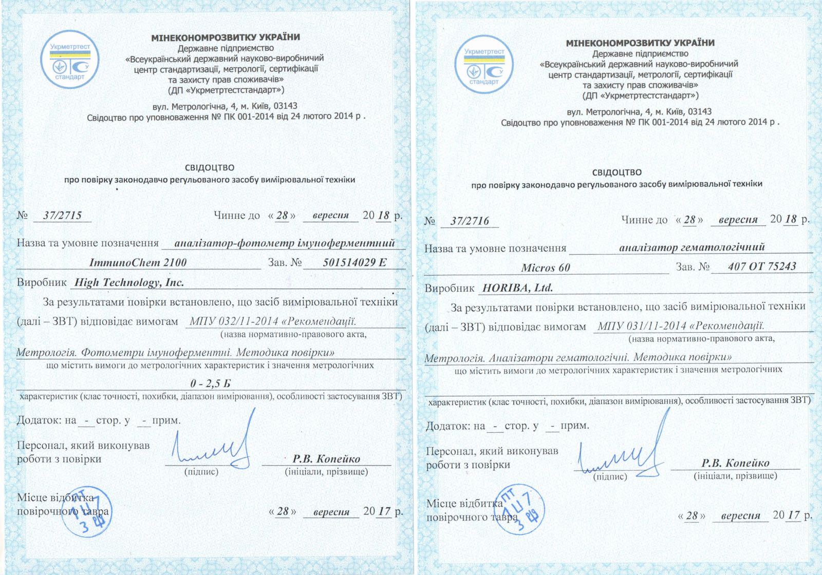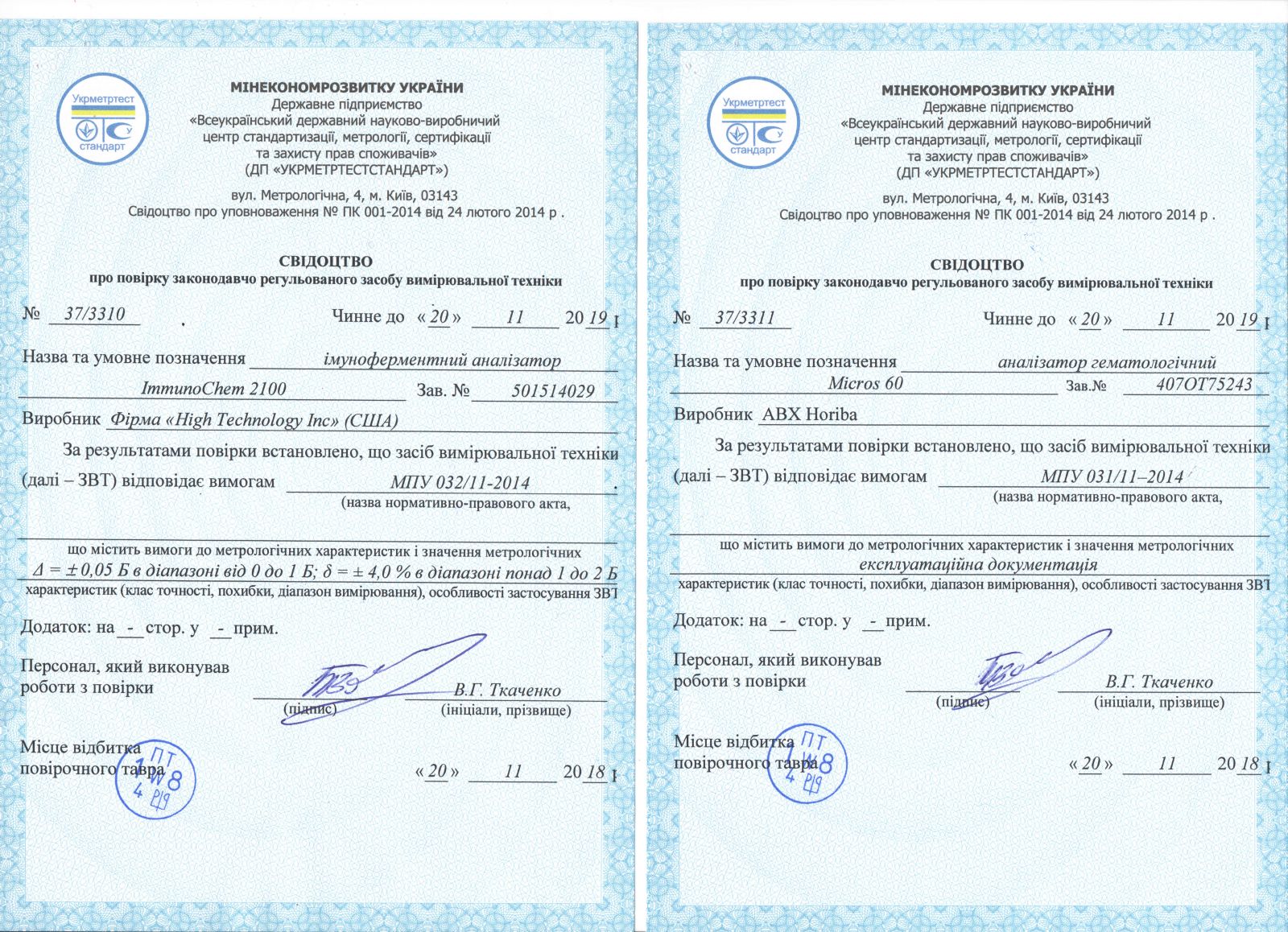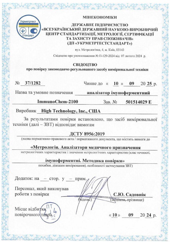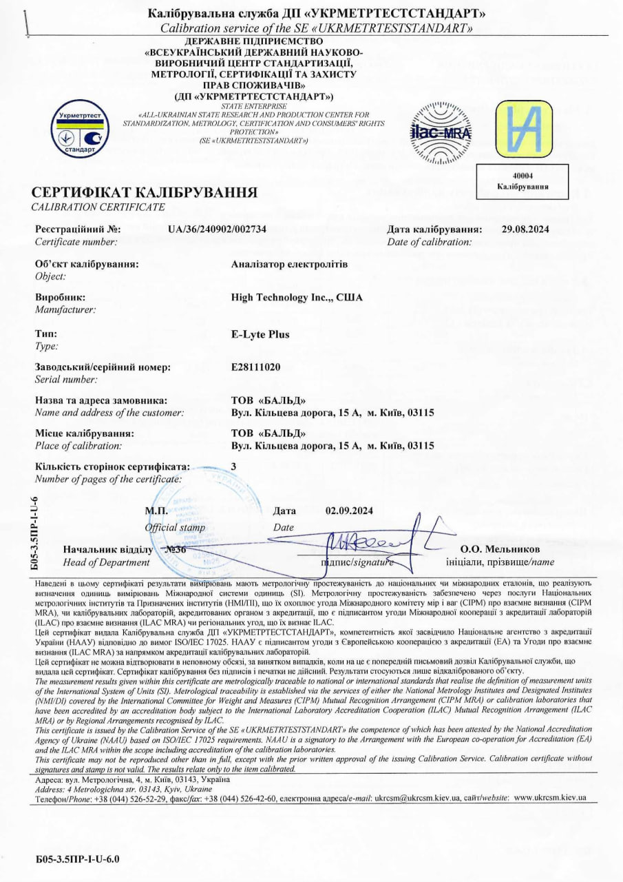 Усі аналізи виконуються виключно на приладах та устаткуванні, які пройшли метрологічну перевірку та відповідають усім вимогам та критеріям діагностичної лабораторії. Рекомендуємо господарям тварин вимагати сертифікаційні документи ветеринарної лабораторії, в яку здаєте аналізи своєї тварини, оскільки не всі лабораторії проходять належну сертифікацію!