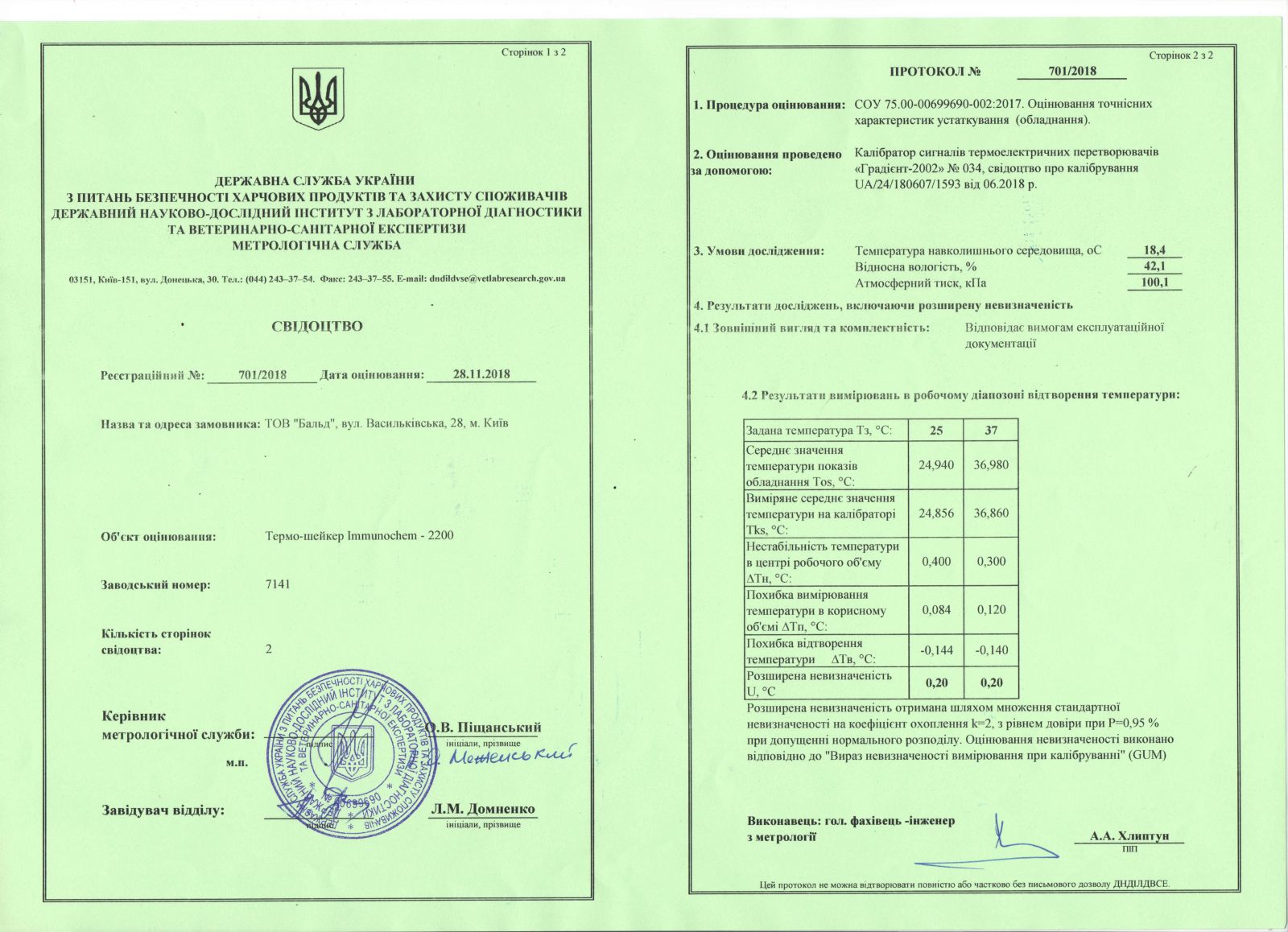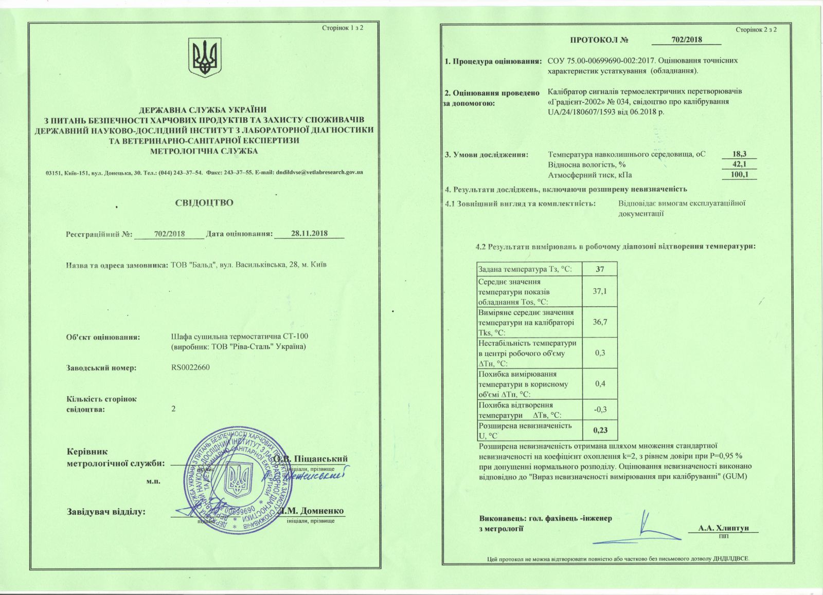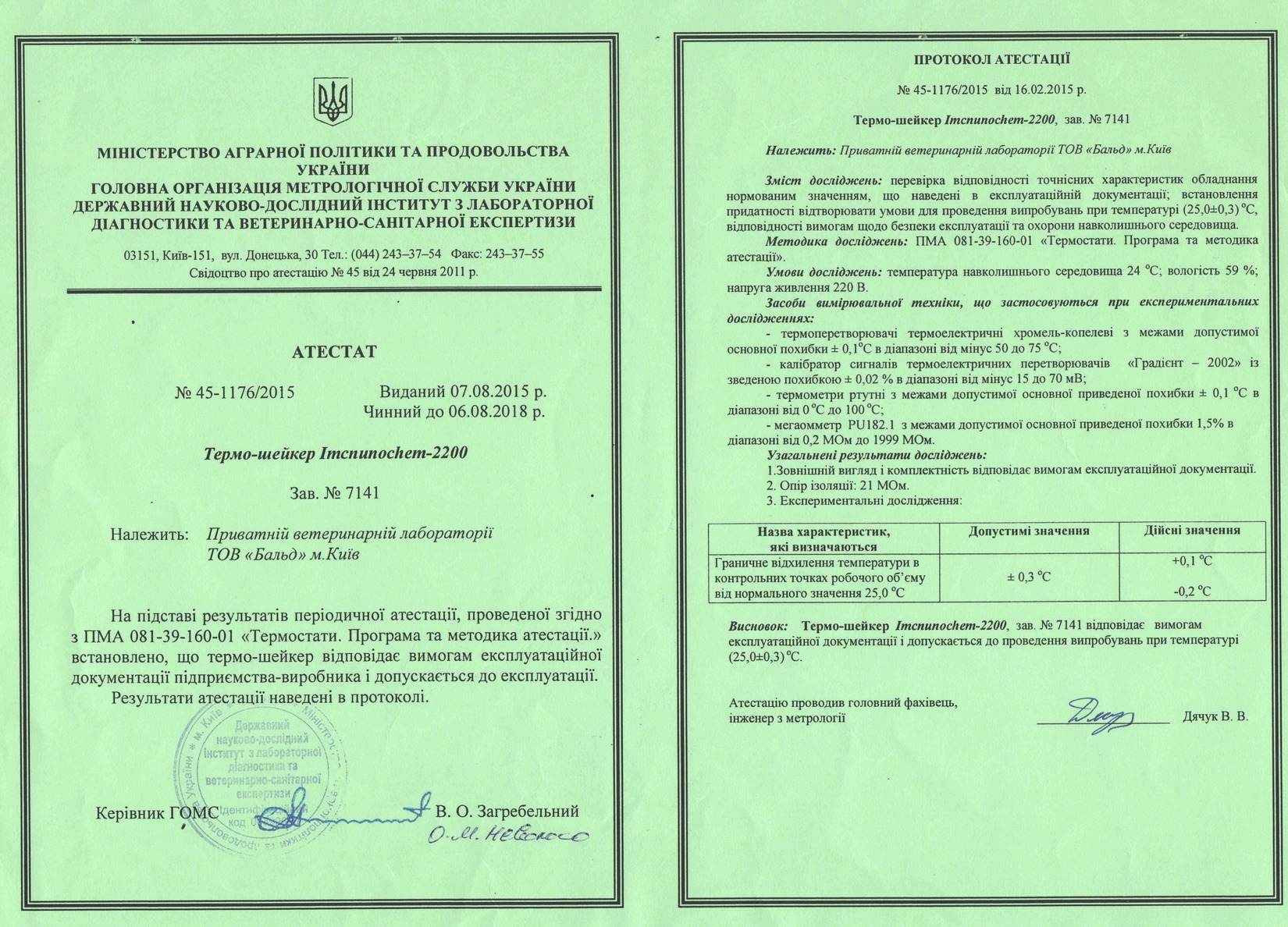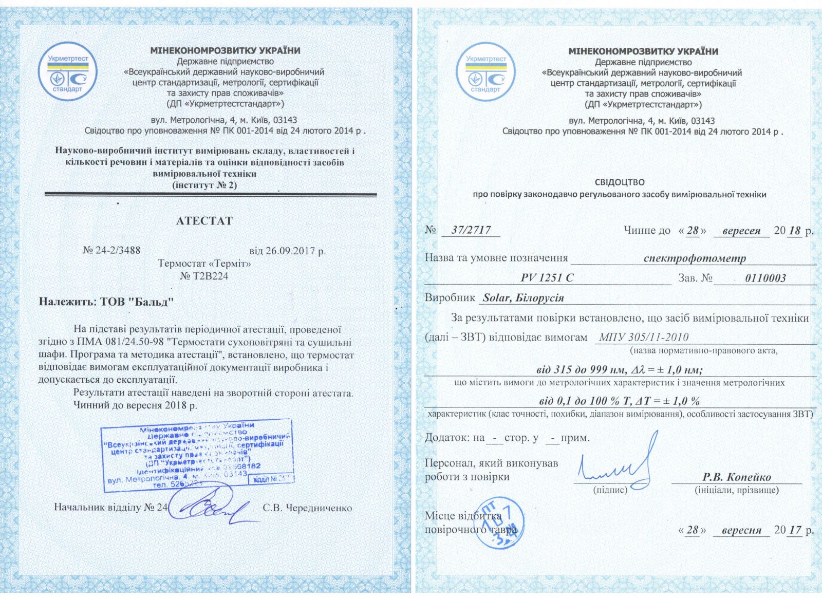 Сертифікат визнання вимірювальних та технологічних можливостей, дозвіл СЕС, метрологічна перевірка обладнання та інше Лабораторію "Бальд" сертифіковано за всіма критеріями відповідно до вимог та норм законодавства України.